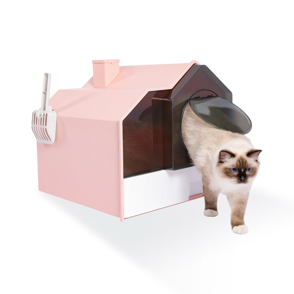 【Effectively prevent cat litter from falling to the ground】: The door of the litter box is a one-way design. After the cat enters, it cannot come out through the door. It can only come out from the top. The lid on the top has many small holes. The litter carried by the cat falls back into the litter box.